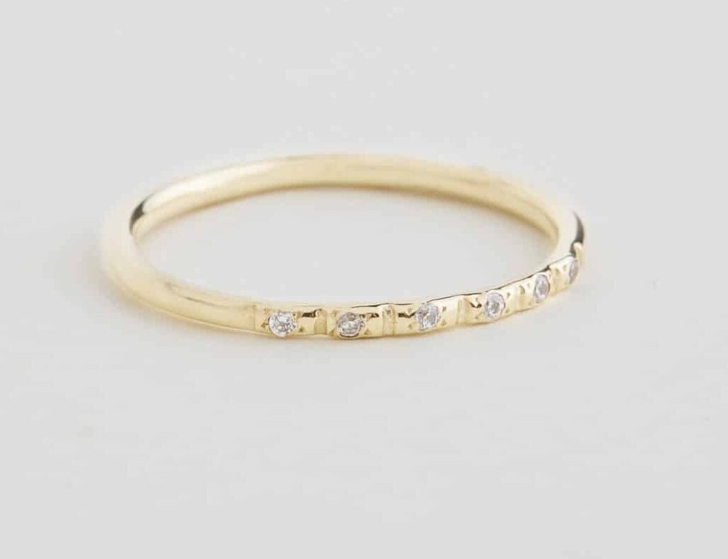 14K gold ring with tiny conflict-free diamonds. This Ring is perfect as a Minimalist and dainty wedding band but also can be perfect as a daily stackable ring | Ring sizer guide