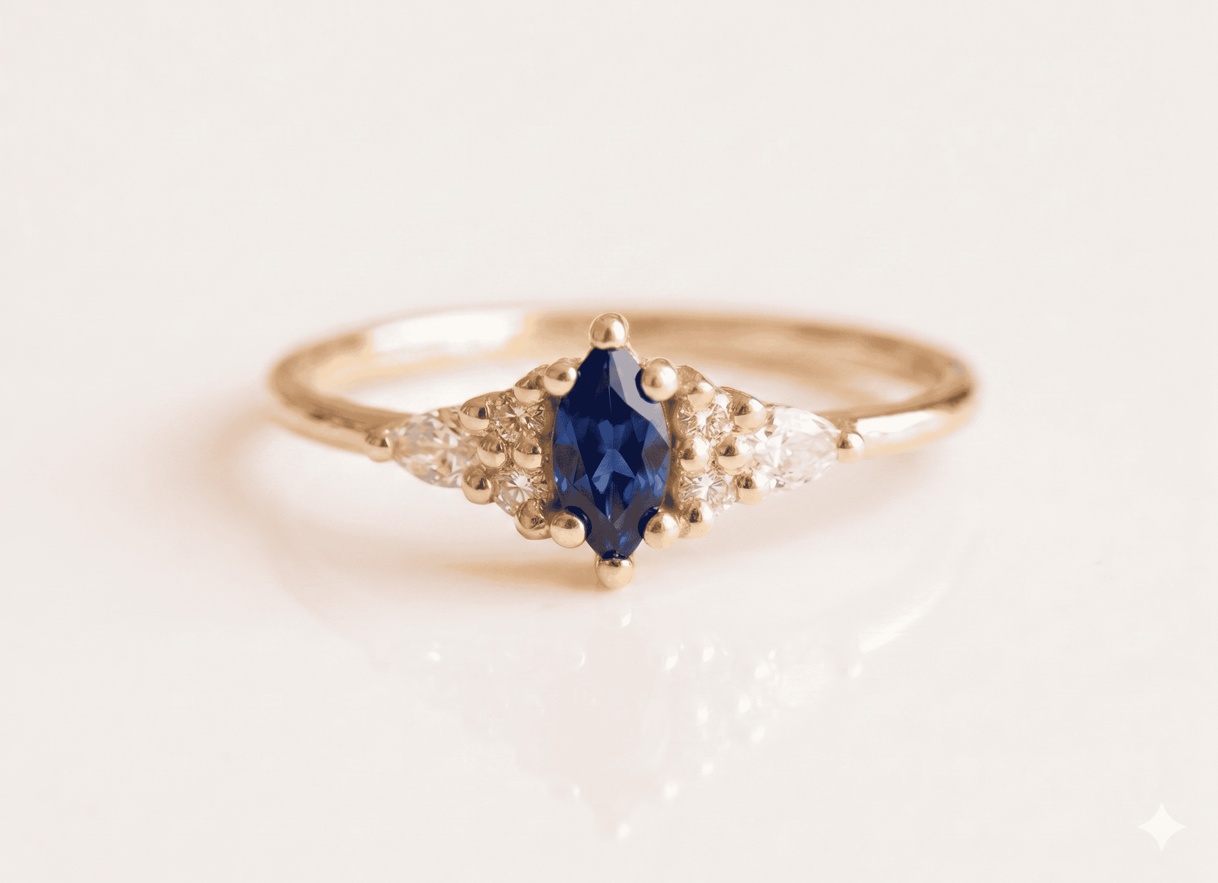 Sapphire Marquise-Cut Engagement Ring, Marquise Engagement Ring, Victorian Engagement Ring, Victorian Diamond Ring.