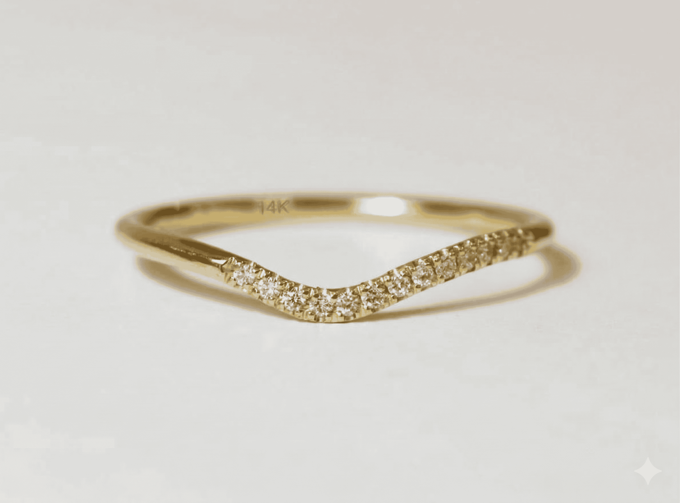 Delicately curved 14K gold ring with an asymmetric arrow silhouette, set with shimmering diamonds. A minimalist piece with a unique flow—ideal for everyday wear or stacking combinations.