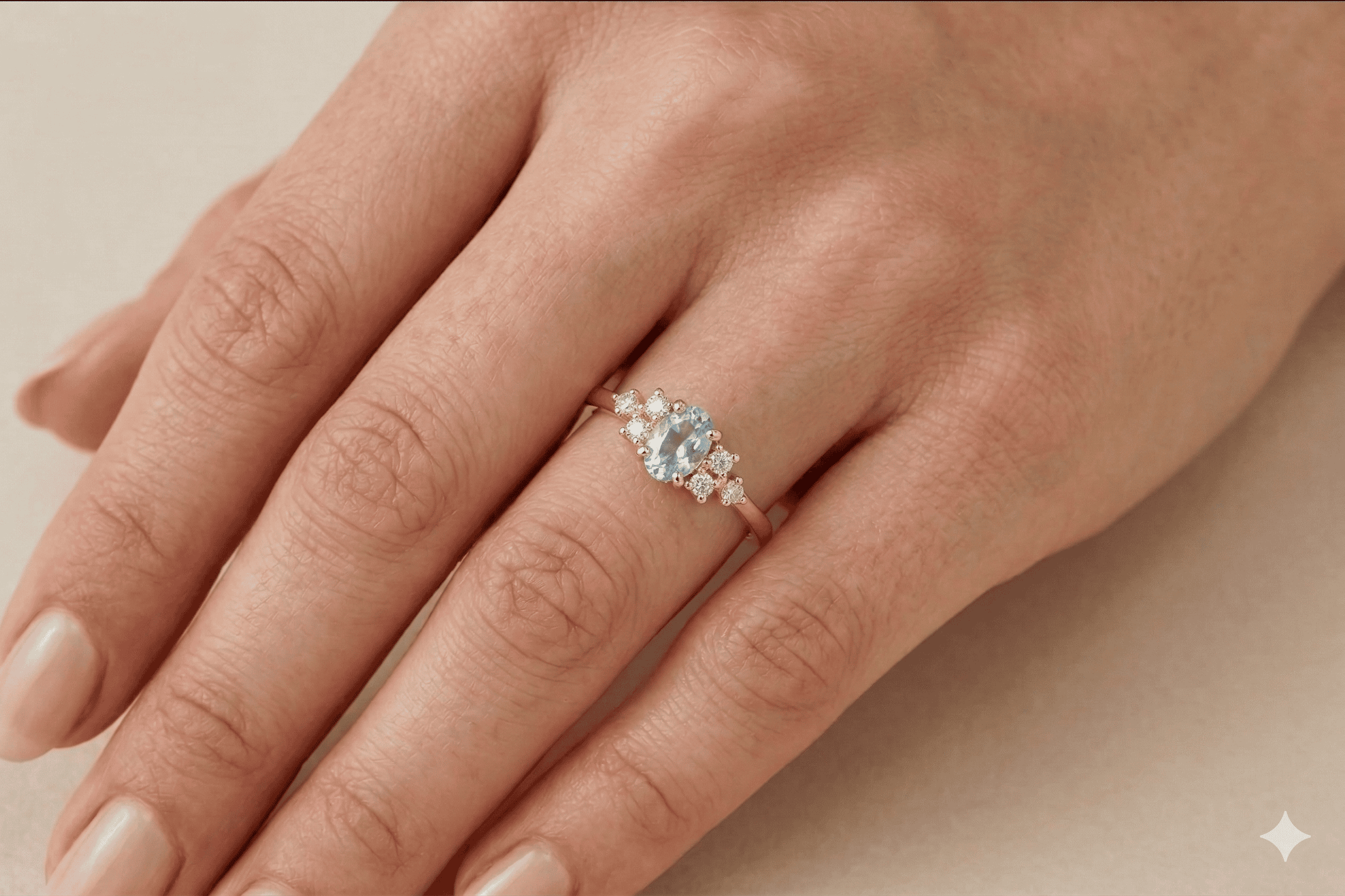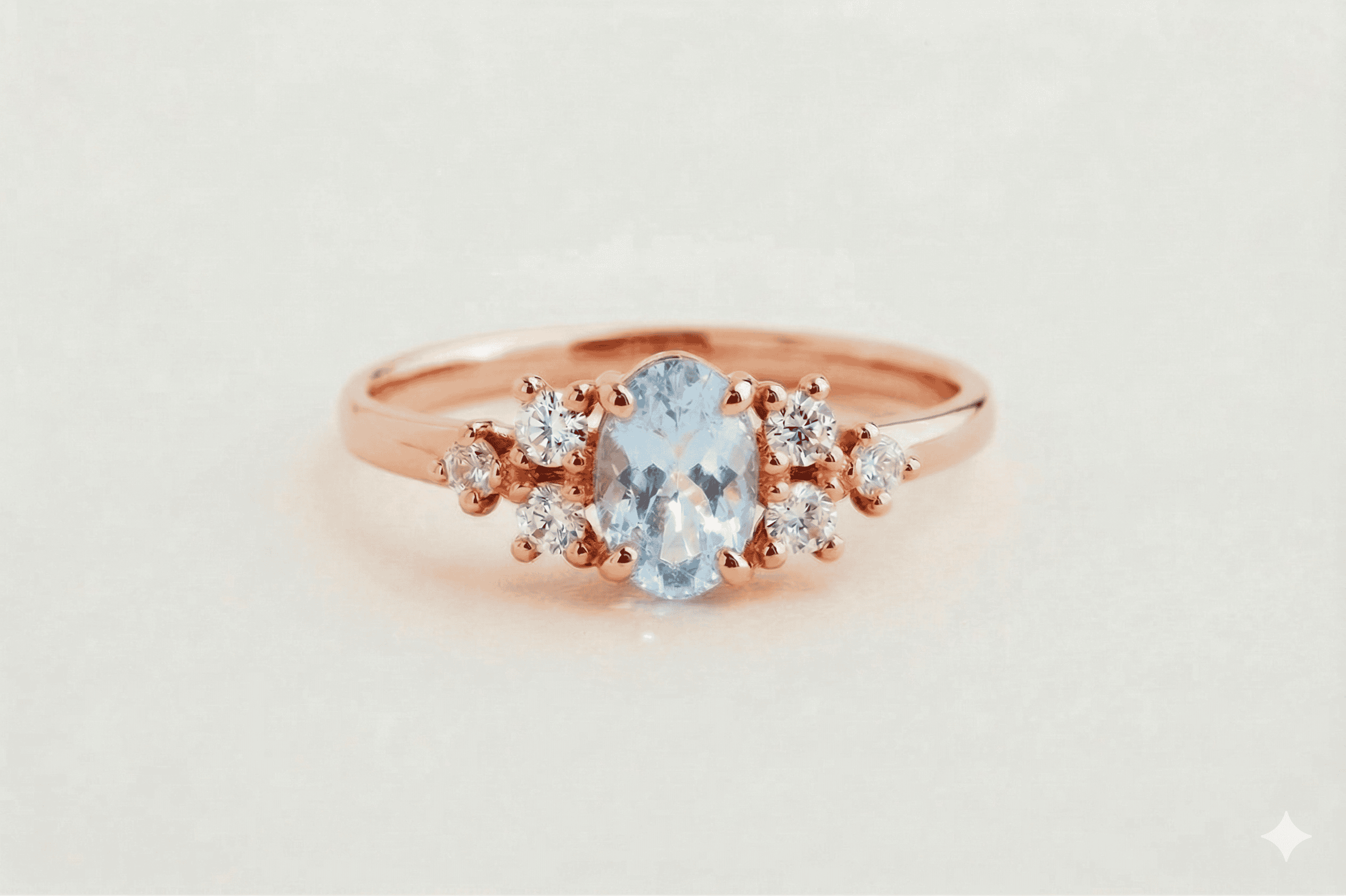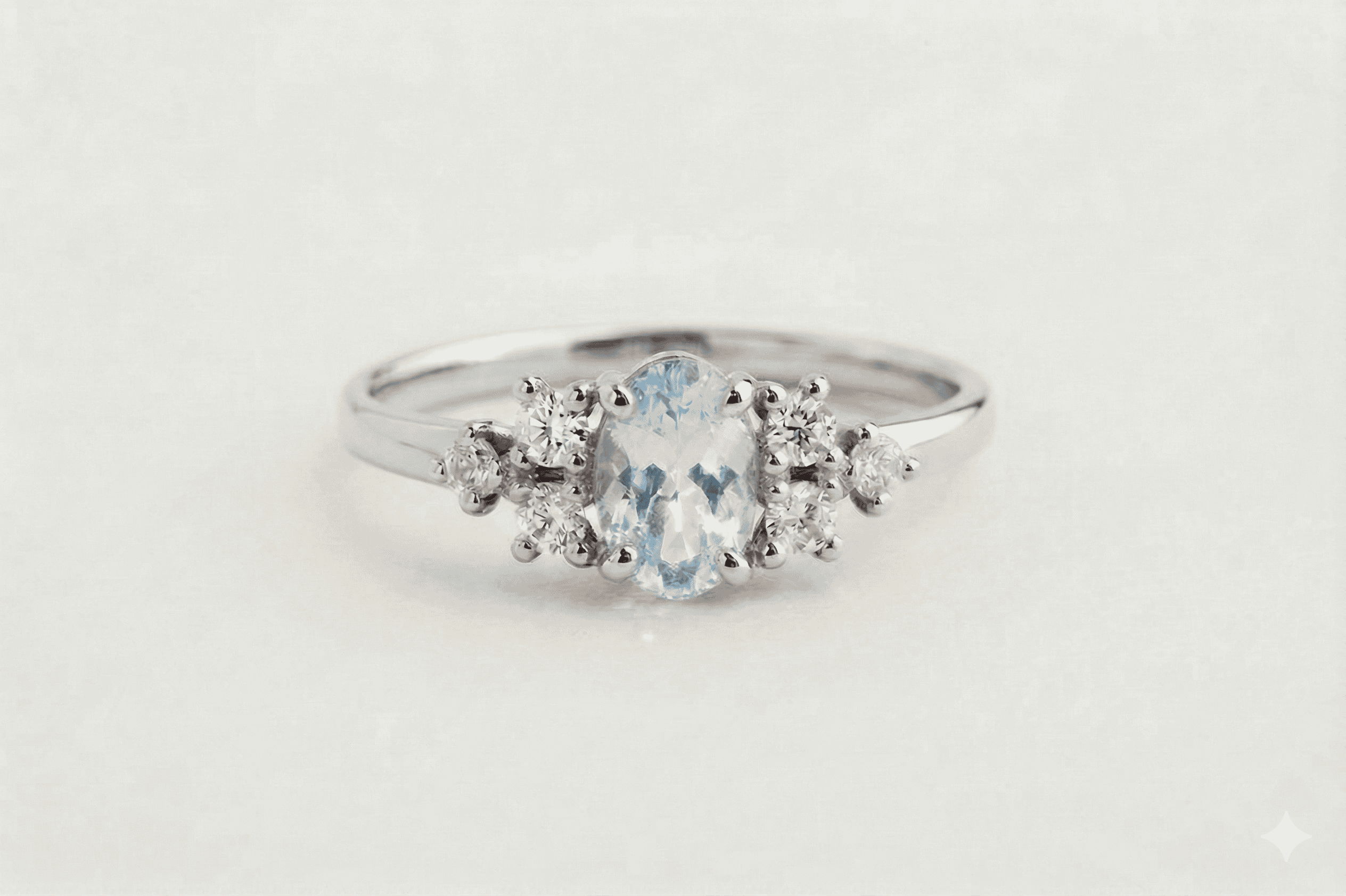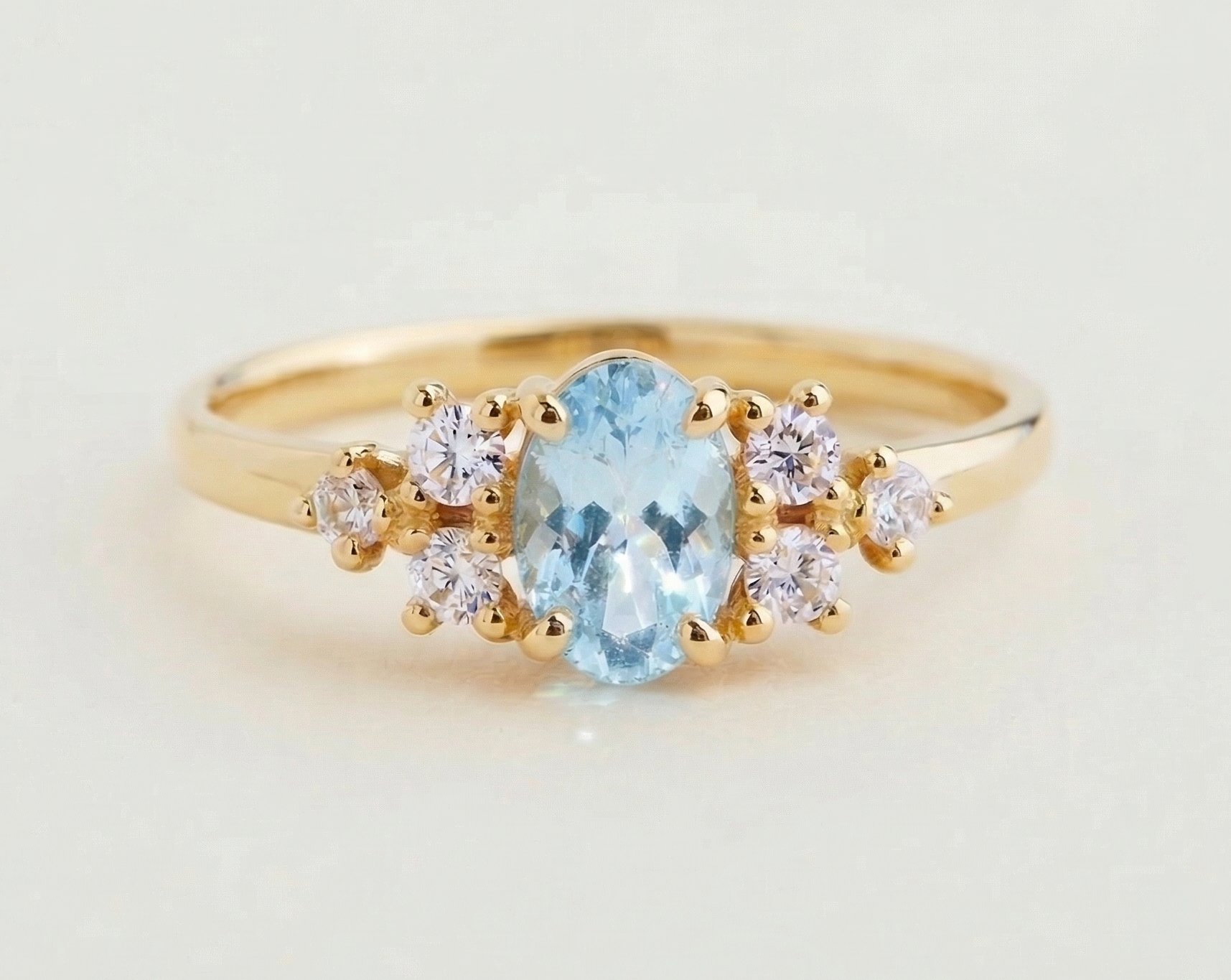 Oval Cut light Sky Blue Topaz gemstone \6*4 mm \ side diamonds lab grown 1.7 mm each