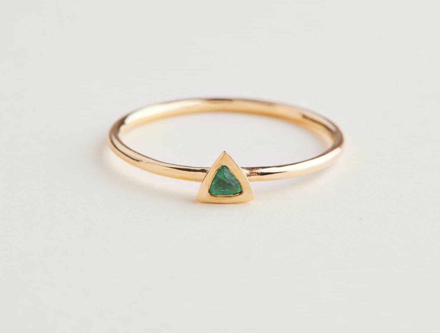How often will you stack this piece? A trillion times or more. Handcrafted in 14k solid gold and set with a Green Emerald gemstone.
