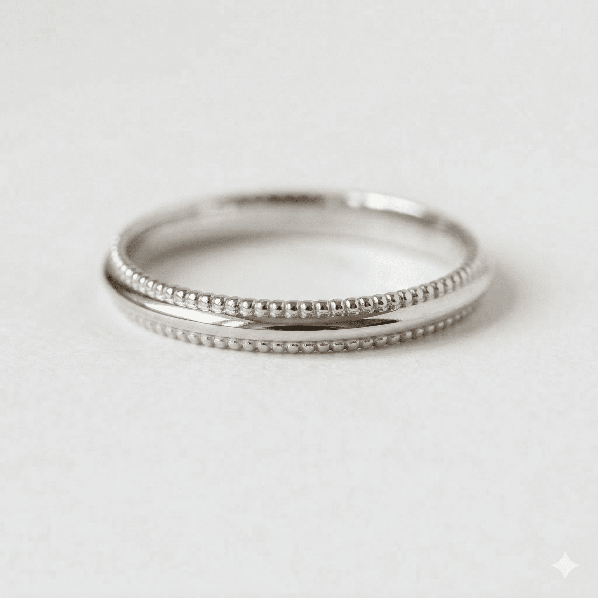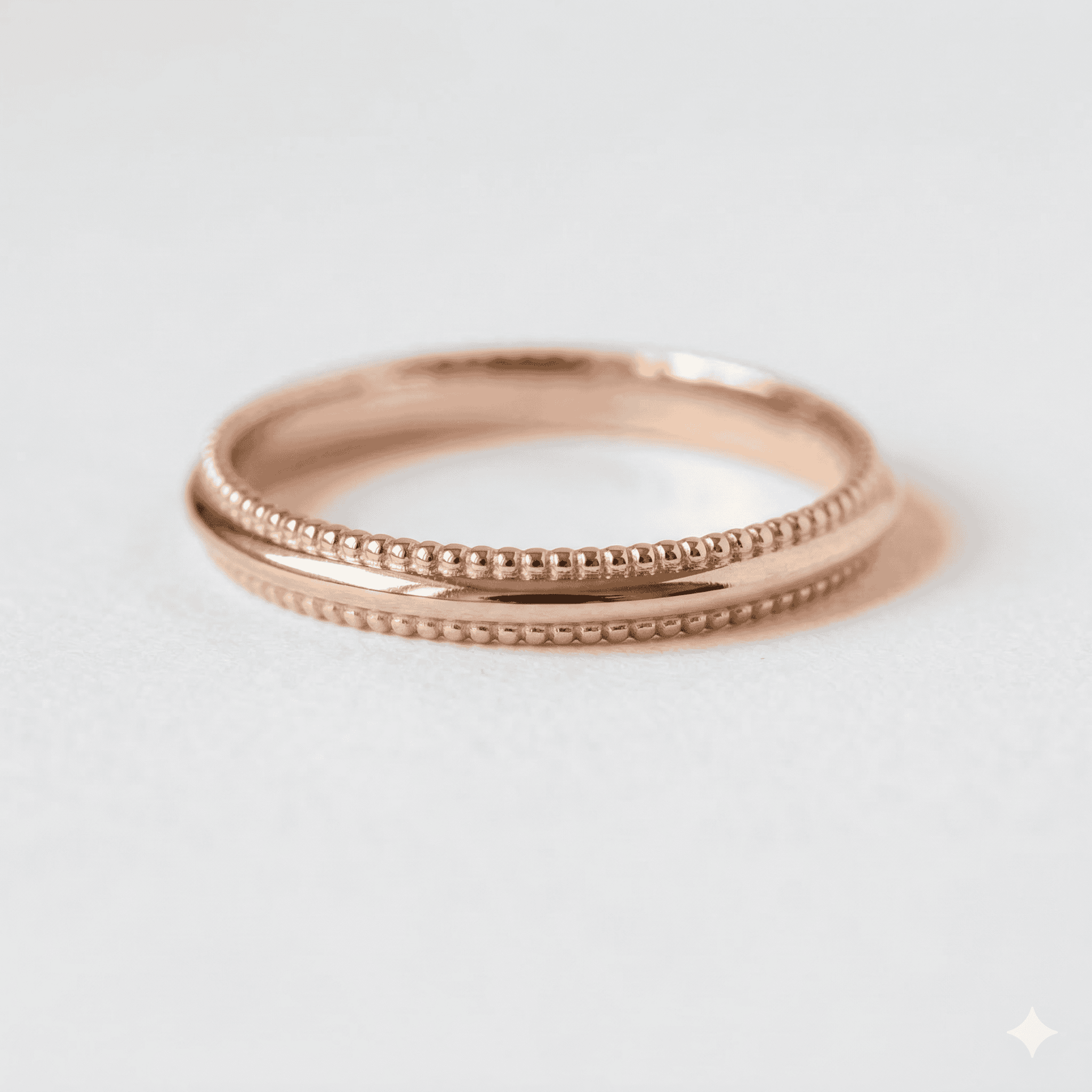 A classic half-round 14K gold wedding band featuring subtle milgrain edging on either side. perfect blend of simplicity and sophistication. In this picture the ring is in Matt finish- you can choose the finish you would like